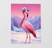 Date alle vostre pareti qualcosa per cui sorridere. Questa opera d'arte audace e stravagante presenta un fenicottero sicuro di sé che si erge fiero in una scena invernale innevata, con tanto di occhiali da sole riflettenti e piume rosa acceso. La vivace palette di colori mescola i caldi toni tropicali con i freddi blu artici, creando un giocoso contrasto visivo che cattura immediatamente l'attenzione. Perfetta per gli interni moderni, gli studi creativi, le stanze dei bambini o qualsiasi altro luogo che necessiti di una spinta di divertimento e personalità. Questa stampa è una celebrazione dell'individualità, della fiducia e del proprio stile unico, indipendentemente dalla stagione.