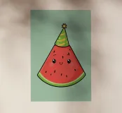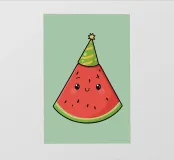 Fetta di cocomero felice con cappello da festa pellicola backlit