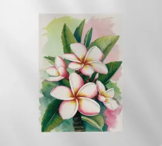 Una composizione astratta alta e stretta, piena di forme e motivi di foglie colorate sovrapposte, che suggerisce una fetta vibrante di una fitta giungla verticale.