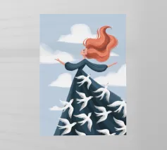 Il dipinto raffigura una persona con capelli corti e rosa su uno sfondo di fiori di ciliegio. La persona indossa una camicia verde e la composizione complessiva emana un senso di crescita e di sicurezza.