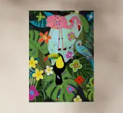 Fiori tropicali e uccelli sfondo nero