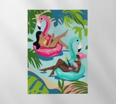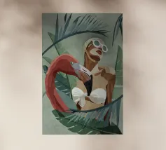 Galleggia in un mondo in cui fiorisce l'immobilità, dove i fenicotteri scivolano, i petali vanno alla deriva e persino un leopardo a riposo sembra sognare. Sospesa nell'acqua e nella meraviglia, è trattenuta dalla quieta magia di un momento che sembra allo stesso tempo indomito e completamente in pace.
