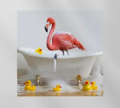 Chi ha detto che eleganza e umorismo non possono andare d'accordo? Questo disegno giocoso raffigura un fenicottero colto nell'atto di srotolare la carta velina, trasformando l'arredamento quotidiano del bagno in un momento stravagante. Perfetto per aggiungere fascino, colore e un sorriso alle vostre pareti.