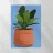Questa immagine presenta una pianta in vaso con ampie foglie verdi in un vaso arancione su uno sfondo blu. I colori decisi e il design semplice creano un contrasto visivo di grande effetto.