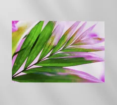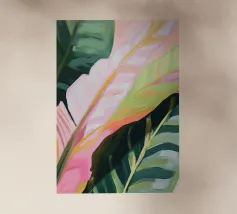 Godetevi la rilassante atmosfera rosa delle foglie di palma tropicali in morbidi colori pastello che incarnano lo stile estivo californiano. Questa illustrazione minimalista porta un'allegra atmosfera di vacanza e vibrazioni creative nella vostra casa!