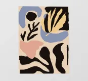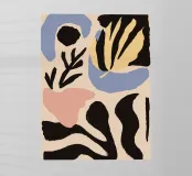 Una composizione astratta sofisticata e minimalista di varie forme di foglie e botaniche in una tavolozza di colori chic e tenui. L'opera d'arte è moderna, elegante e ha un'atmosfera organica e rilassante.