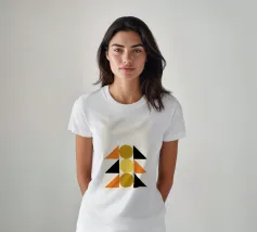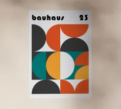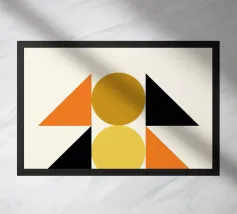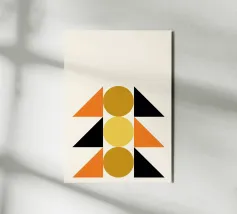 Scoprite l'accattivante semplicità di questa stampa d'arte astratta ispirata al Bauhaus. Il disegno presenta una suggestiva disposizione verticale di tre cerchi in varie tonalità di giallo oro, affiancati da un dinamico gioco di triangoli arancioni e neri. Questo pezzo incarna magistralmente i principi fondamentali del movimento Bauhaus, enfatizzando le forme geometriche fondamentali, l'equilibrio e il ritmo visivo. Prodotta con un'impressionante risoluzione di 7000x5000 pixel e 300 dpi, questa arte digitale di alta qualità assicura che ogni linea nitida e ogni tonalità vibrante sia resa con eccezionale precisione, rendendola un'irresistibile opera aggiuntiva.