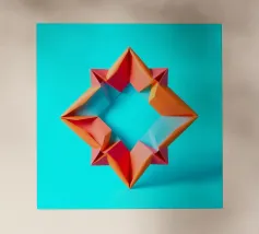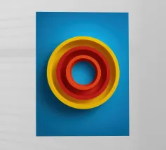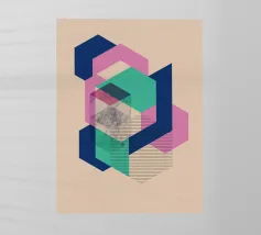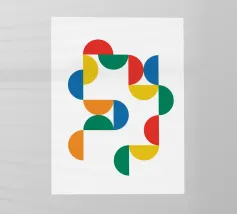 Una vivace disposizione di forme geometriche in vari colori crea un disegno intrigante su uno sfondo di luce soffusa, sottolineando l'arte e la creatività moderne.