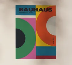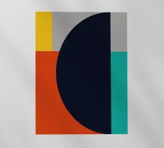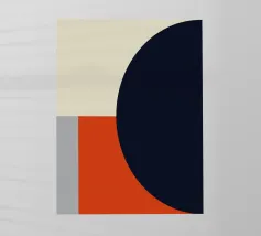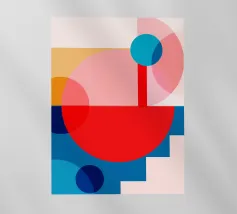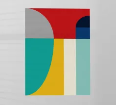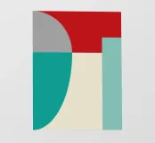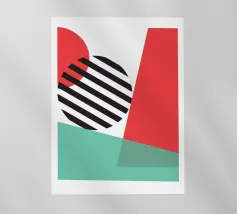 Un'audace composizione astratta con forme geometriche nei toni del rosso, del verde acqua, del grigio e del beige. Il design è semplice e moderno e mette in risalto il contrasto di colori.