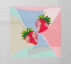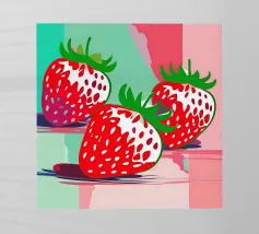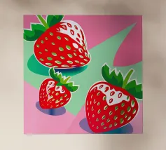 Una singola fragola è al centro di questa opera colorata e moderna. Lo sfondo turchese e rosa con struttura astratta contrasta con la superficie lucida del frutto. L'opera d'arte ricorda la pop art e colpisce per la sua presenza grafica e i suoi colori decisi. Ideale per cucine moderne, spazi di design o come elemento di richiamo in un ambiente creativo.