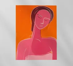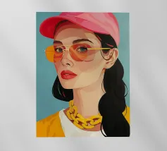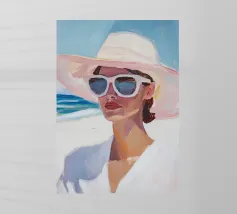 Questa elegante illustrazione di ritratto di una giovane donna incarna il look estivo con il suo top con le spalline e i fiori colorati in morbide tonalità pastello. Con occhiali da sole, orecchini e collana, la giovane irradia freschezza, mentre l'acconciatura bionda e il cerchietto completano il suo look. Circondata da un gioco di colori arancioni, rosa e beige, porta alla ribalta il sole, la spiaggia e il mare.