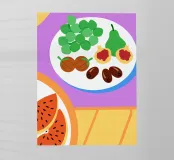 Un'esplosione di colori e freschezza irradia il dipinto "Healthy Fruit". Ogni pennellata dร vita alla consistenza della buccia matura del frutto, come se ci invitasse ad assaggiare la dolcezza della vita.