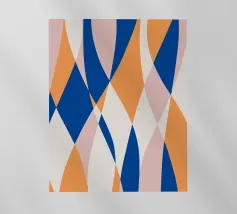Un motivo geometrico composto da quadrati interconnessi nei toni del rosa, del blu e del nero, che crea un'illusione ottica. Il disegno ripetitivo dà un senso di profondità e movimento.