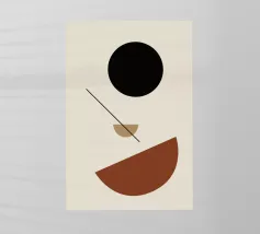 Le forme geometriche sono impilate in una composizione equilibrata. Il disegno è composto da un cerchio e da diversi semicerchi nei toni del nero, del marrone e del marrone scuro.