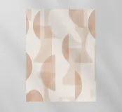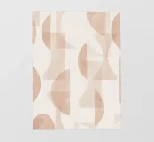 Il disegno presenta un'accattivante disposizione di cerchi, rettangoli e forme astratte di foglie sovrapposte, che alludono sottilmente a forme organiche all'interno della struttura. La texture granulosa aggiunge profondità e interesse visivo.