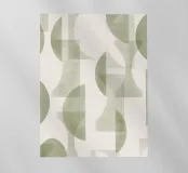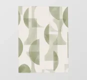 Il disegno presenta un'accattivante disposizione di cerchi, rettangoli e forme astratte di foglie sovrapposte, che alludono sottilmente a forme organiche all'interno della struttura. La texture granulosa aggiunge profondità e interesse visivo.