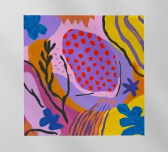 Un collage astratto vibrante ed eclettico caratterizzato da un mix di motivi audaci, tra cui righe, stampa ghepardo e pois. La composizione è un'espressione giocosa ed energica di uno stile moderno bohémien o massimalista.