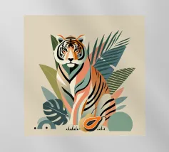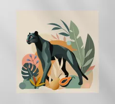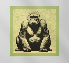 Un imponente gorilla tiene in mano una banana nel mezzo di un lussureggiante paesaggio tropicale. Questo disegno realizzato ad arte combina piante esotiche, colori vivaci e la maestosa presenza di un gorilla. Perfetta per progetti che celebrano la bellezza della natura e della fauna selvatica, questa illustrazione trasmette un forte ma armonioso senso di natura selvaggia e tranquillità.Gorilla maestoso: rappresentazione di un gorilla orgoglioso che tiene in mano una banana.