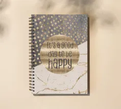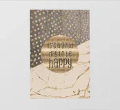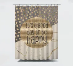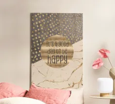 Arte grafica moderna in un'elegante veste dorata ed elementi tipografici. Poche parole e tanta verità! Un design che si adatta al motto della vita. È UN BUON GIORNO PER ESSERE FELICI.