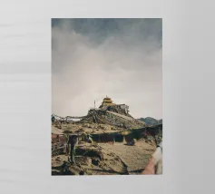 Un sorprendente contrasto tra la devozione umana e la grandezza della natura: il tetto di un monastero ornato d'oro e turchese si protende verso le imponenti cime innevate dell'Himalaya. L'intricato lavoro artigianale riflette la profonda spiritualità della regione, armonizzandosi con l'eterna presenza delle montagne. Catturata lungo il Circuito dell'Annapurna, questa immagine racchiude l'essenza della ricca cultura e dei paesaggi mozzafiato del Nepal.