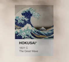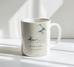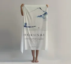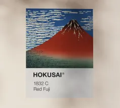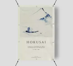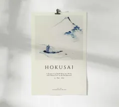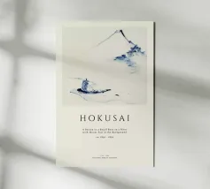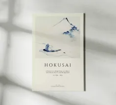 Hokusai - A Person in a Small Boat on a River with Mount Fuji in the Background II pellicola backlit