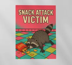 Un procione dei cartoni animati vestito con un mantello si trova su un cerchio magico, circondato da candele accese. Il testo sopra e sotto il procione recita umoristicamente: "Non posso evocare un cazzo da darti.