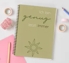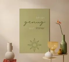 Un dolce promemoria pieno di amore per se stessi. Questo motivo porta pace interiore e accettazione nella stanza. I morbidi toni del verde hanno un effetto di radicamento e armonia, perfetto come promemoria quotidiano: sei abbastanza, così come sei.