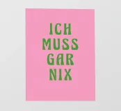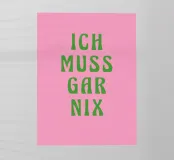 "Non devo fare nulla": questo poster tipografico minimalista combina un messaggio forte con un design moderno. I caratteri cubitali verdi e decisi su uno sfondo rosa forniscono un accento cromatico potente e rendono l'affermazione un vero e proprio richiamo visivo. Perfetto come opera d'arte grafica per chi ama le parole chiare e gli slogan eleganti.
