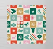 Portate il fascino retrò al vostro arredamento natalizio con questo vivace motivo a scacchiera caratterizzato da toni tenui di rosso, rosa, azzurro, verde e ocra su un caldo sfondo avorio. Questo disegno, strutturato e giocoso, evoca un'atmosfera nostalgica ma moderna, perfetta per creare un'atmosfera gioiosa e accogliente durante la stagione invernale. Ideale per decorazioni domestiche, tovaglie o accessori festivi, questo motivo aggiunge un tocco divertente e senza tempo alle vostre celebrazioni natalizie.