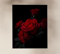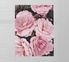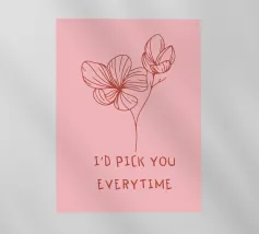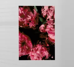La composizione vive del contrasto tra l'intensità floreale e la chiarezza tipografica. Sembra un momento catturato, personale e universale allo stesso tempo.