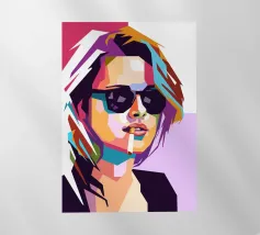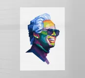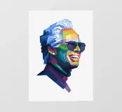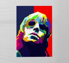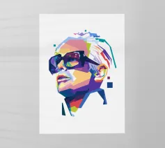 Una vibrante illustrazione WPAP (Wedha's Pop Art Portrait) di Baby Billy, caratterizzata da audaci forme geometriche e colori vivaci e contrastanti che creano un ritratto dinamico e stilizzato pieno di energia e personalità.