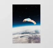 Un collage surreale che fonde il corpo umano con la vastità cosmica. Un tuffatore sospeso sopra la Terra trasforma il salto in una metafora di coraggio, libertà ed esplorazione dell'ignoto. Il contrasto tra la figura atletica e il cosmo infinito crea un'immagine suggestiva che unisce minimalismo e immaginazione onirica. Perfetto per chi apprezza l'arte moderna con un tocco surreale e cosmico.