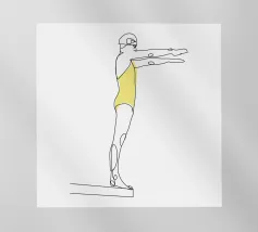 Cattura l'eleganza di un tuffatore maschio di metà secolo su un trampolino, illustrato in una line art minimalista con tenui colori pastello, questo splendido design aggiunge un tocco di vntage a qualsiasi prodotto.