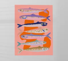 Vi presentiamo la nostra incantevole stampa fine art con un delizioso gruppo di sardine colorate eclettiche e stravaganti. Questa vibrante opera d'arte cattura l'essenza giocosa di questi affascinanti pesci, ognuno dei quali è ornato da una tavolozza unica di tenui colori pastello che danzano sulla tela. Le sardine, con le loro espressioni stravaganti e i loro disegni fantasiosi, portano un senso di gioia e di estrosità in ogni spazio.