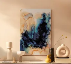 "Ink no.04" è un'opera d'arte espressiva a inchiostro ad alcool che gioca con sfumature di colore fluide, blu profondo e toni caldi del beige. Le strutture organiche sono create dalla speciale tecnica degli inchiostri ad alcool, che sembrano piccoli paesaggi o nuvole di fumo. Questo disegno astratto conferisce un'eleganza moderna a qualsiasi casa: perfetto per il soggiorno, lo studio o come pacato richiamo visivo sopra la credenza. Ideale per chi ama i colori armoniosi, l'arte astratta e le stampe artistiche di alta qualità.