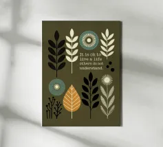 Elegante design retrò con foglie dai colori caldi e uno slogan ispiratore. Porta vibrazioni positive nella vostra casa - perfetto come decorazione o regalo.