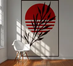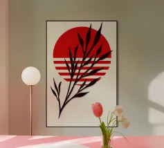 Quest'opera d'arte è caratterizzata da un audace sole rosso e da un ramo botanico scuro e fluente, che fonde forme geometriche e linee organiche. Il design si ispira all'estetica giapponese, fondendo il minimalismo giapponese e l'armonia scandinava. Il contrasto tra il nero profondo e il rosso vibrante e la crema morbida crea una composizione suggestiva e tranquilla. Perfetto per chi apprezza la natura, l'equilibrio e l'arte astratta senza tempo, questo pezzo dona un senso di calma ed eleganza a qualsiasi ambiente.