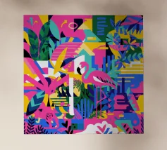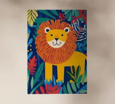 Una maestosa zebra si trova nel mezzo di una giungla vivace e colorata, creando un contrasto sorprendente tra le strisce monocromatiche dell'animale e il fogliame lussureggiante e multicolore.