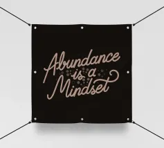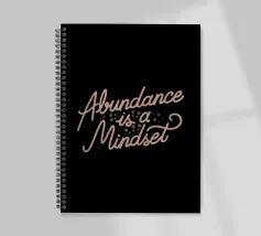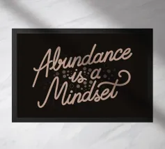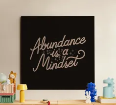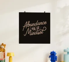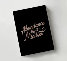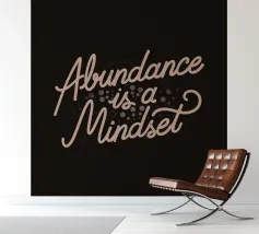Un lettering con scritte in tonalità pastello e sfondo nero, ornato dalla frase "L'abbondanza è una mentalità". Questo disegno ricorda che bisogna mantenere la positività nella propria vita. È un regalo utile per chi è sempre positivo o per chi ha bisogno di un promemoria.