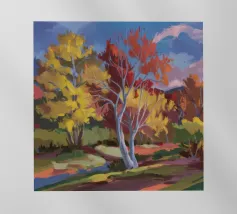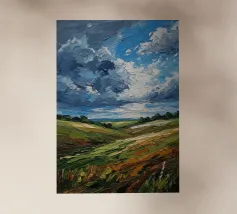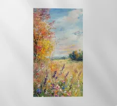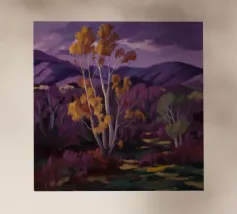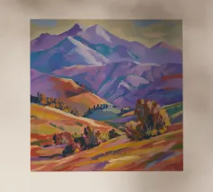 Questo splendido dipinto a olio originale, realizzato con una spatola, cattura la transizione mozzafiato di un paesaggio autunnale. La tecnica a impasto spesso crea una texture ricca e tridimensionale che rende l'opera viva. I tratti audaci di blu e viola vibranti delle colline e del cielo sono splendidamente contrastati dai caldi arancioni e gialli degli alberi autunnali. Questo pezzo è una celebrazione della luce e della struttura, perfetto per aggiungere un tocco di serena e dinamica bellezza a qualsiasi casa o ufficio. È un vero e proprio oggetto da collezione per coloro che apprezzano le qualità espressive e tattili di questa opera.