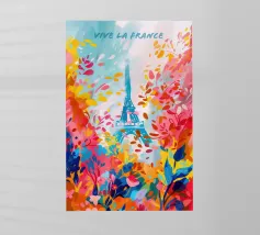Un'interpretazione vibrante e ritmica della Torre Eiffel di Robert Delaunay, che fonde la struttura cubista con i colori vivaci dell'Orfismo.
