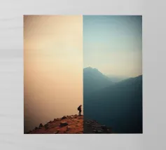 Questa illustrazione digitale ritrae un uomo bloccato su un'isola della sua mente, uno spazio vibrante e surreale sospeso tra due montagne imponenti. Le montagne, scure e imponenti, simboleggiano i confini che lo confinano, mentre l'isola esplode di colori, riflettendo l'intensità del suo mondo interiore. Isolata ma vivida, la scena cattura la tensione tra la libertà di pensiero e i limiti del proprio paesaggio mentale. È una rappresentazione potente della solitudine, dell'autoriflessione e della lotta per trovare chiarezza dentro di sé.