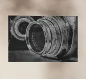 Uno scatto in bianco e nero di due obiettivi classici con l'aggiunta di graffi.