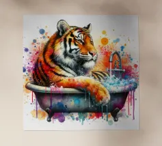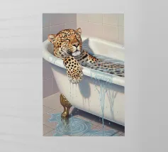 Illustrazione di un leopardo nella vasca da bagno.