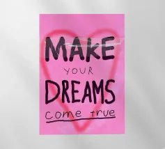 Poche parole e tanta verità! Un design che si adatta al motto della vita. LASCIA CHE I TUOI SOGNI DIVENTINO REALTÀ. Fallo, non limitarti a sognarlo! Una tipografia minimalista con un tocco di colore versato addolcisce la vostra giornata.
