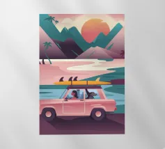 Sperimentate la massima libertà e avventura con le nostre opere d'arte vintage. Sentite il sole sulla pelle mentre guidate lungo la costa in una classica decappottabile. Immaginate il vento tra i capelli mentre una pattinatrice spensierata scivola sull'oceano. Questo capolavoro cattura la nostalgia di un viaggio in auto retrò e vi avvicina alla bellezza di una vita senza limiti. Perfetto per ogni appassionato di arte e avventura".
