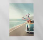 Experience the ultimate freedom and adventure with our vintage artwork. Feel the sun on your skin as you drive along the scenic coastline in a classic convertible. Imagine the wind in your hair as a carefree skater glides by the ocean. This masterpiece captures the nostalgia of a retro road trip and brings you closer to the beauty of an unlimited life. Perfect for any art and adventure enthusiast."