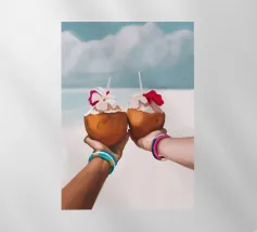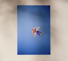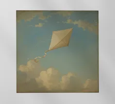 Un'illustrazione sognante e piena di luce di due aquiloni bianchi che si librano in un cielo azzurro, con delicate code di nastro che scivolano vicino al sole splendente. Con una texture pastello e una tavolozza pacifica, quest'opera d'arte cattura l'essenza della libertà, della nostalgia e della gioia tranquilla. Perfetto per asili nido, spazi ariosi e per chiunque sia attratto da scene di serenità edificanti e minimaliste.
