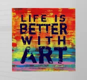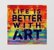 Rosso vivo, giallo brillante e il messaggio: "La vita è migliore con l'arte" Arte che motiva! Un'opera che rende visibile la gioia di vivere.