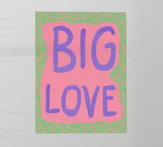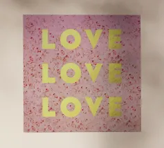 Un'illustrazione moderna e creativa dai vivaci colori verde-viola esprime il messaggio "Love You Too" a grandi lettere e celebra l'amore e la fiducia tra le persone. Perfetta per occasioni romantiche come i matrimoni!